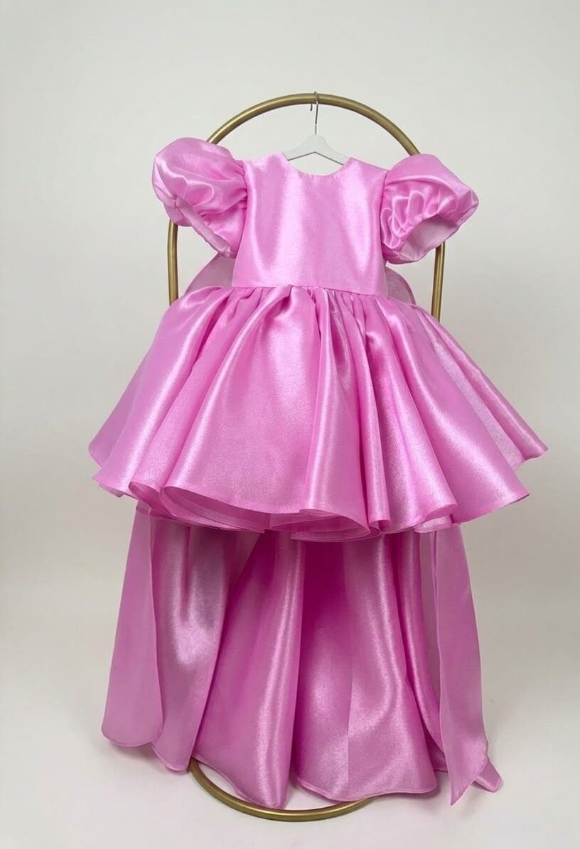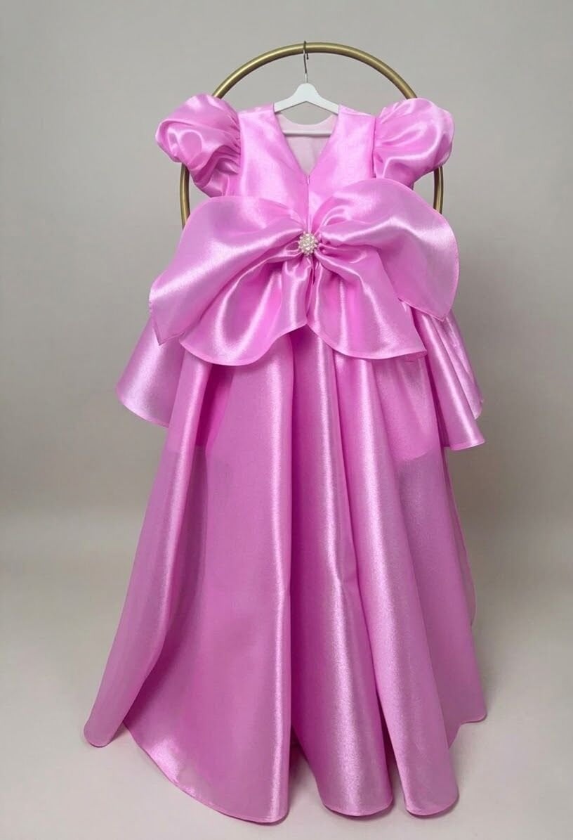 Annie Kız Çocuk Prenses Elbisesi – Pembe Büyük Fiyonklu Kuyruk Detaylı Model Abiye