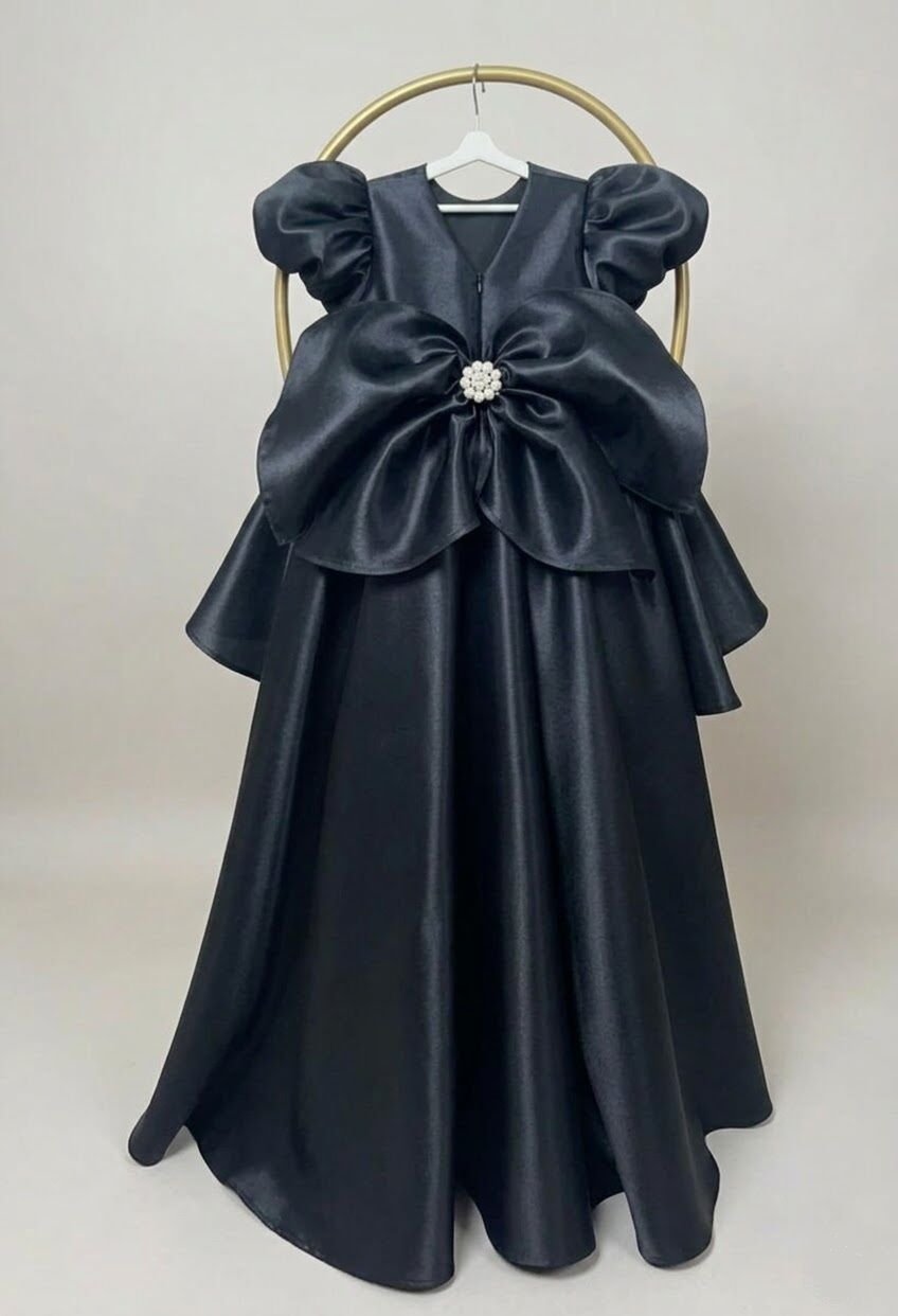 Annie Kız Çocuk Prenses Elbisesi – Siyah Büyük Fiyonklu Kuyruk Detaylı Model Abiye