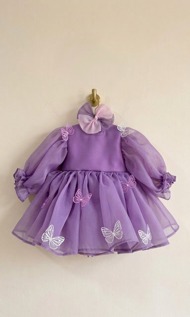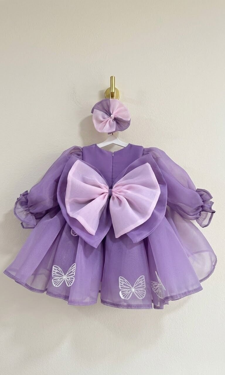 -Canlı mor rengiyle dikkat çeken bu elbise, kız çocuklarının enerjisini yansıtır.