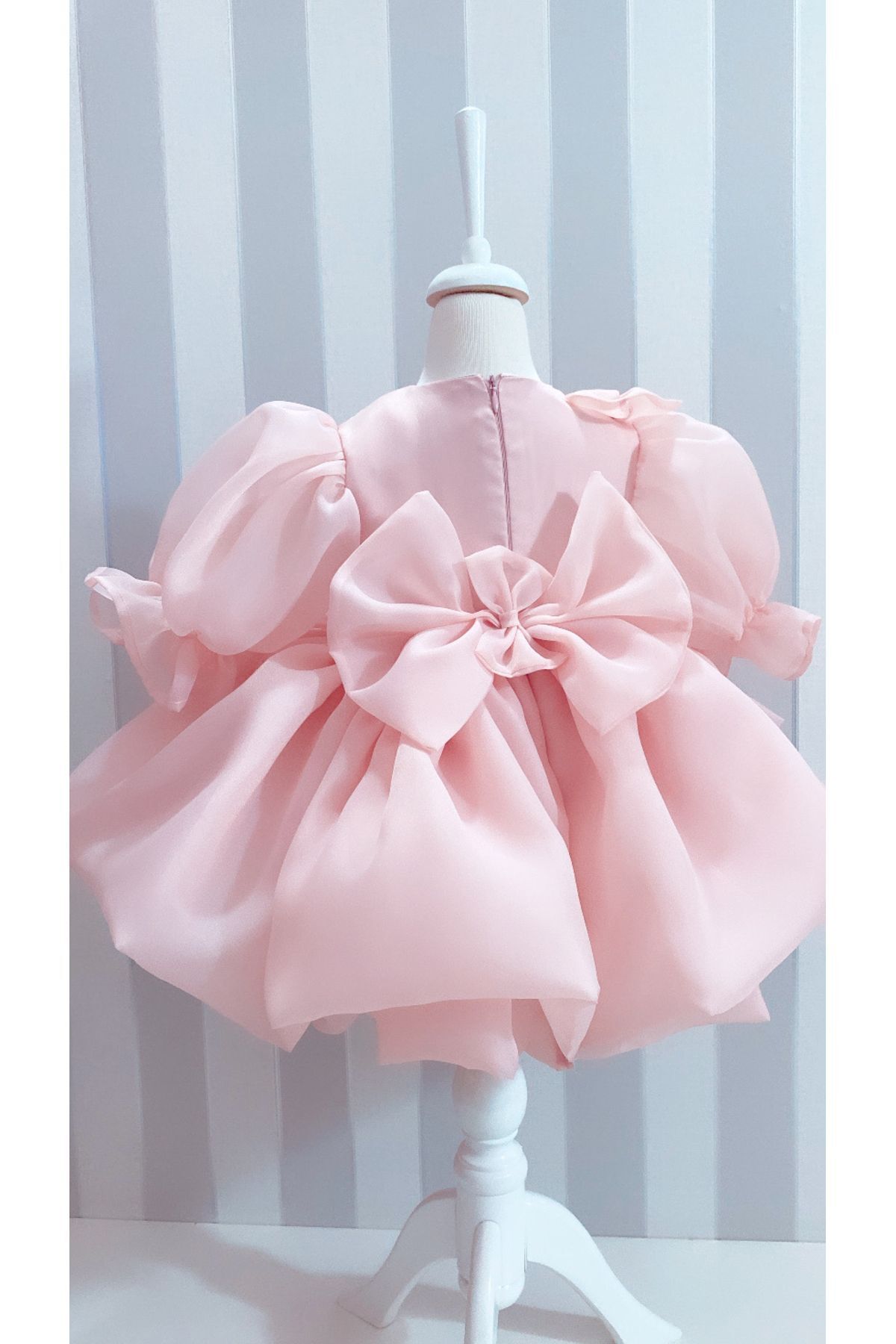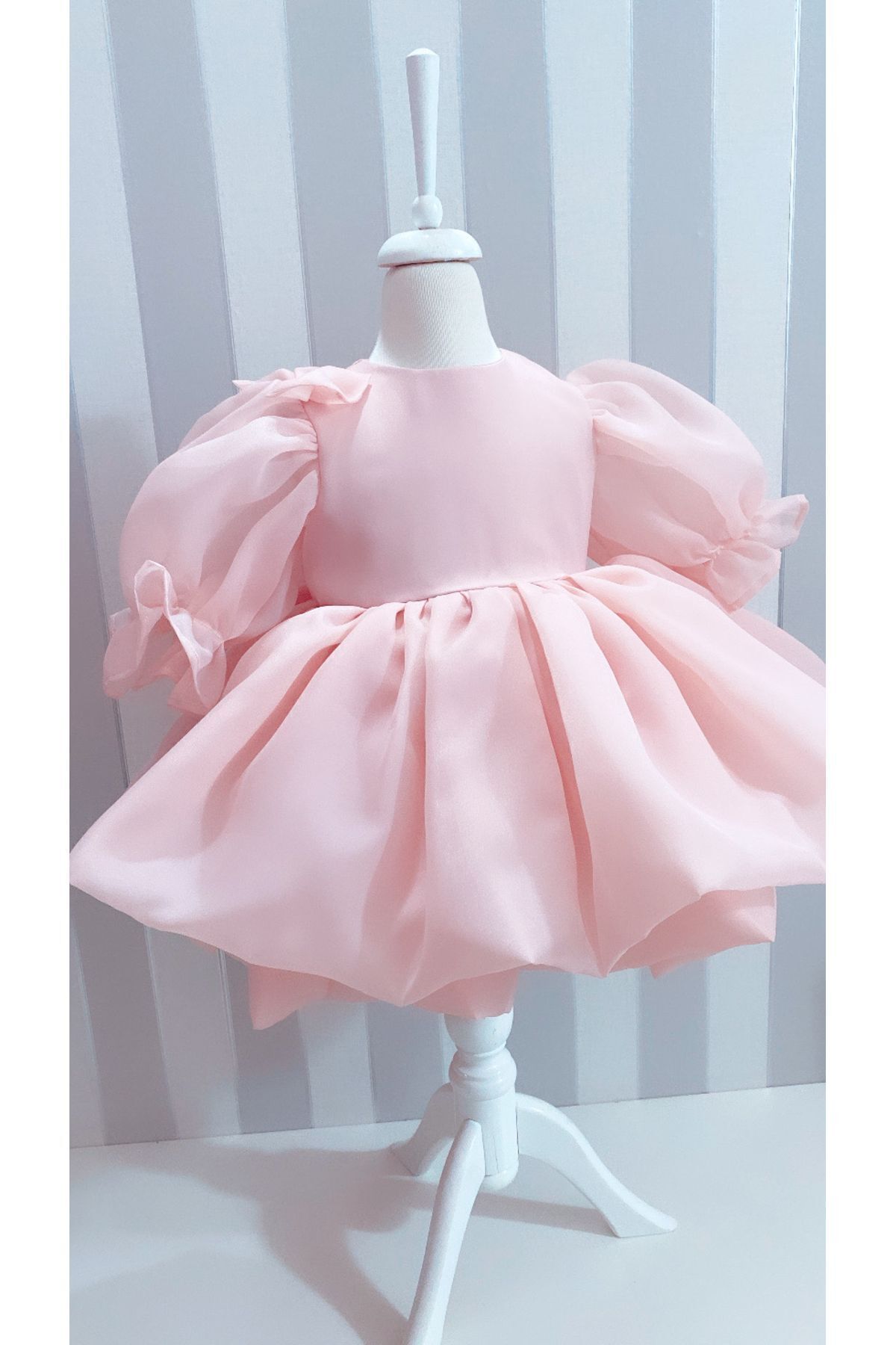 Karolin Balon Kollu Kabarık Kız Çocuk Elbisesi - Pudra