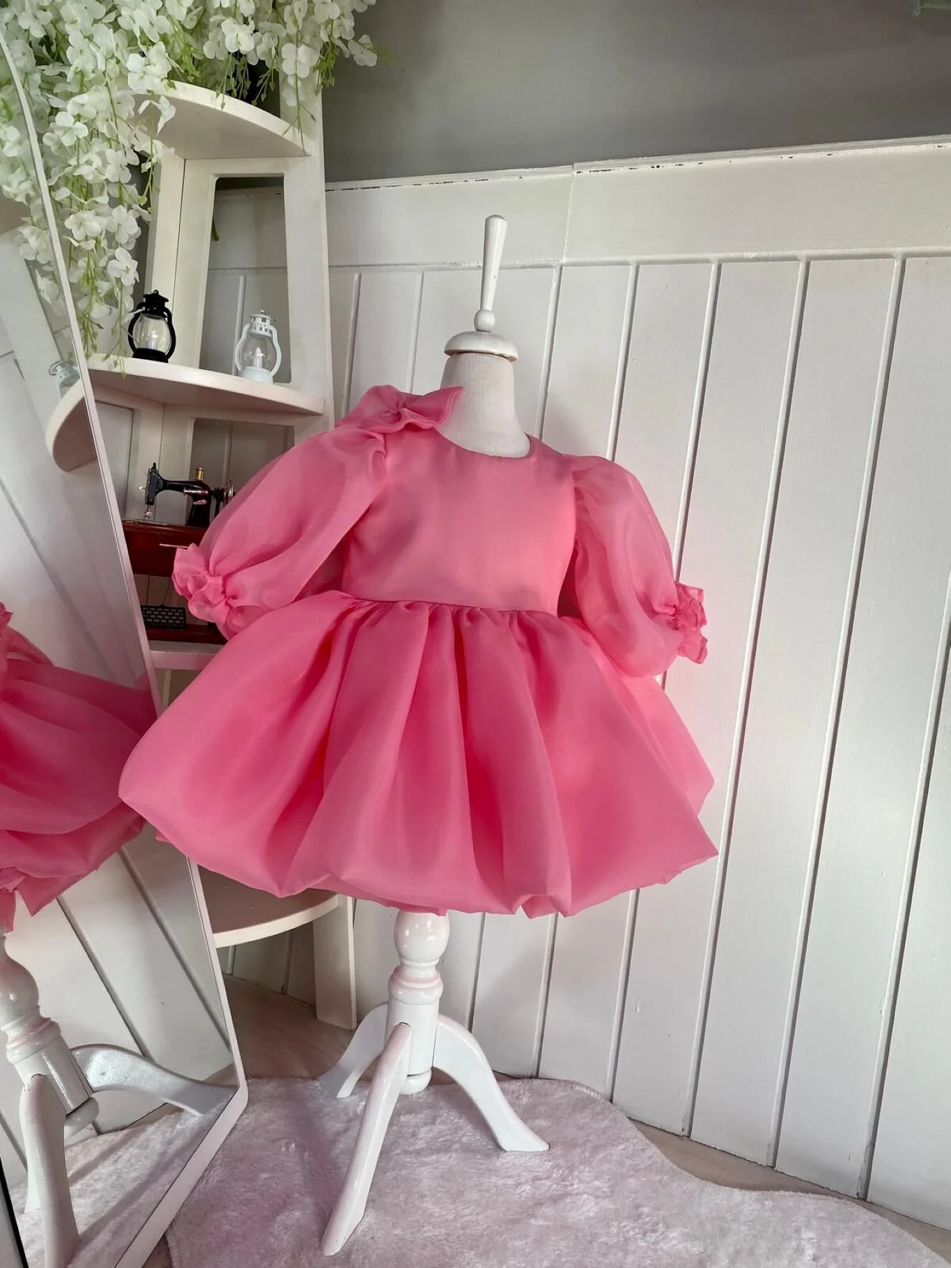 Karolin Balon Kollu Kabarık Kız Çocuk Elbisesi - Fuşya