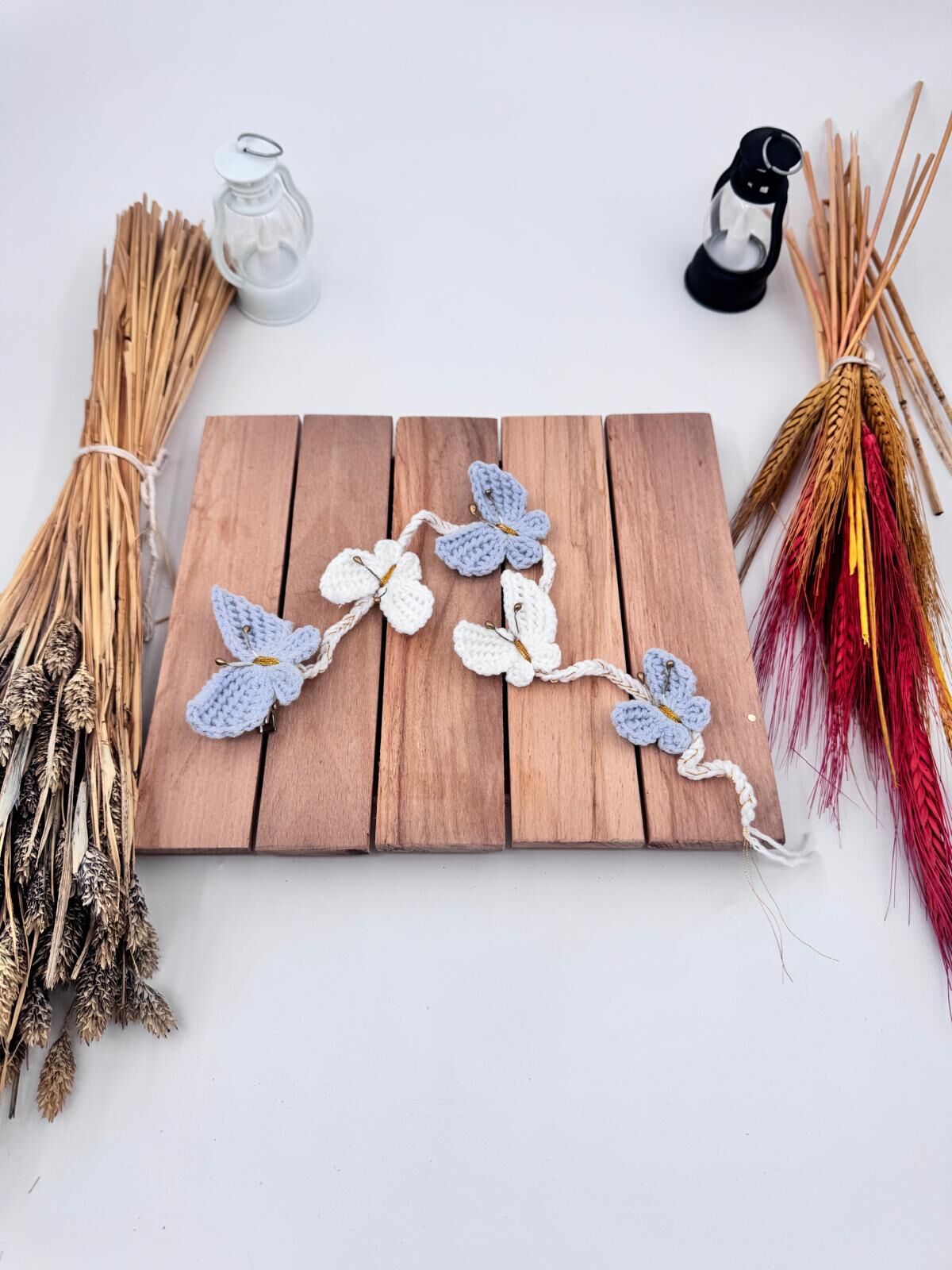 Kelebek salkım toka - Mavi kelebek konsept örgü klips toka