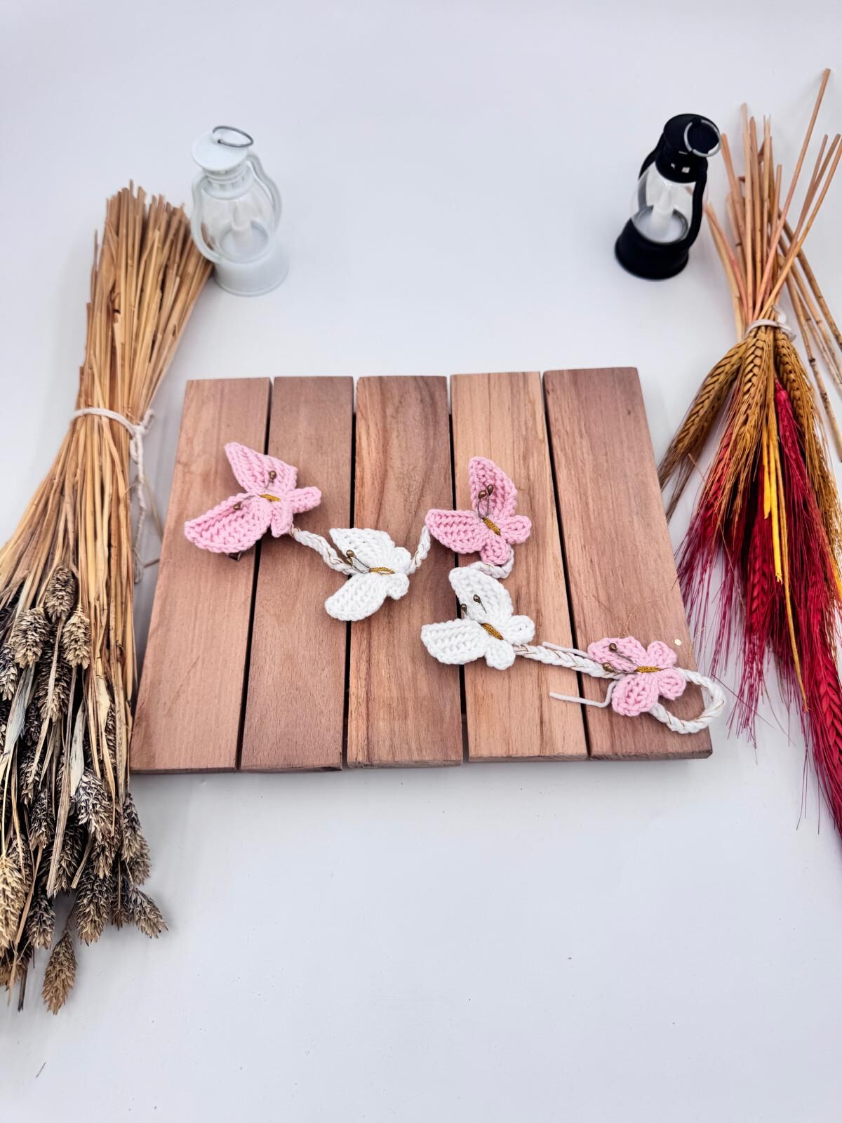 Renkli kelebekler ve sallanan salkım detayı ile bu tokayı sevecekler.