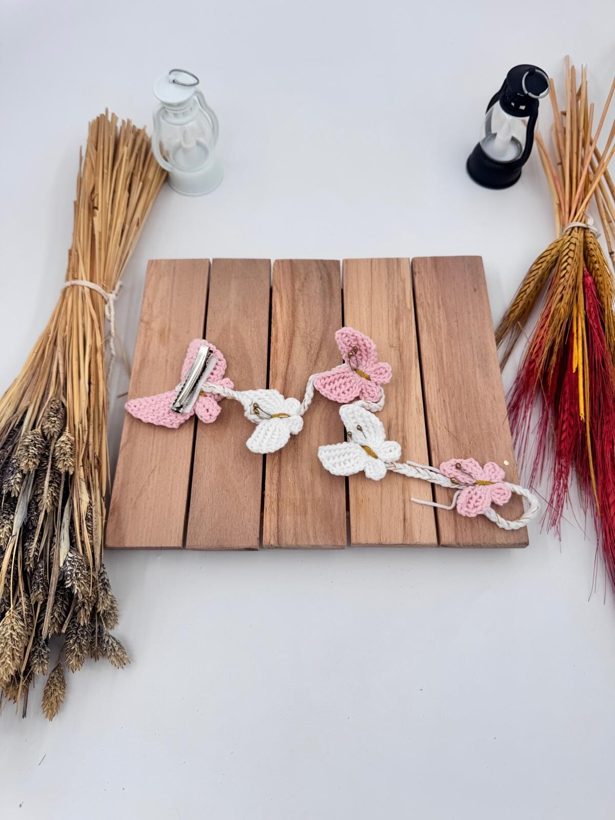 Tabii, kelebekli salkım çocuk örgü tokası, minik kızların saçlarına şirinlik katacak.