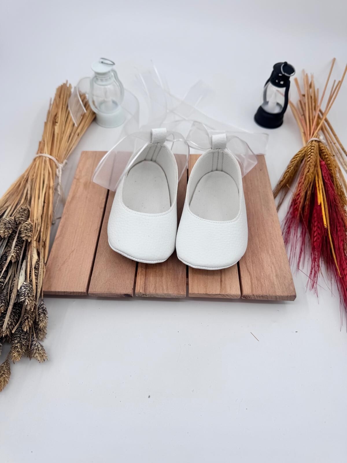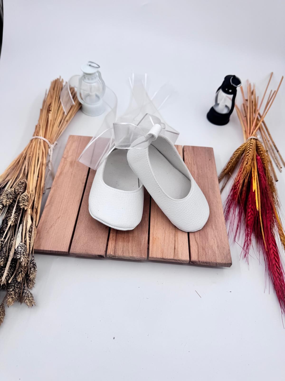 Minny Beyaz Babet Doğal Deri Bebek Makosen