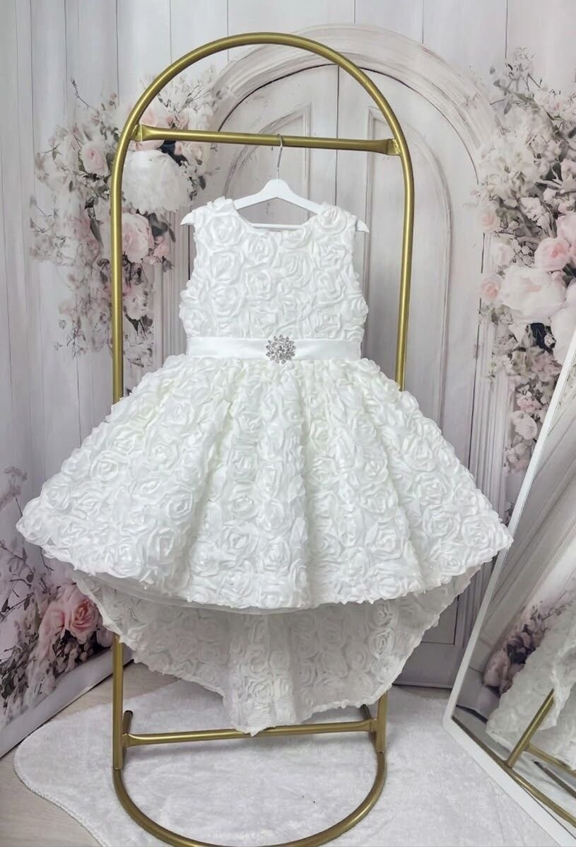 Gül Detaylı Kuyruklu Kız Çocuk Elbisesi -Düğün Doğum Günü Parti Elbisesi
