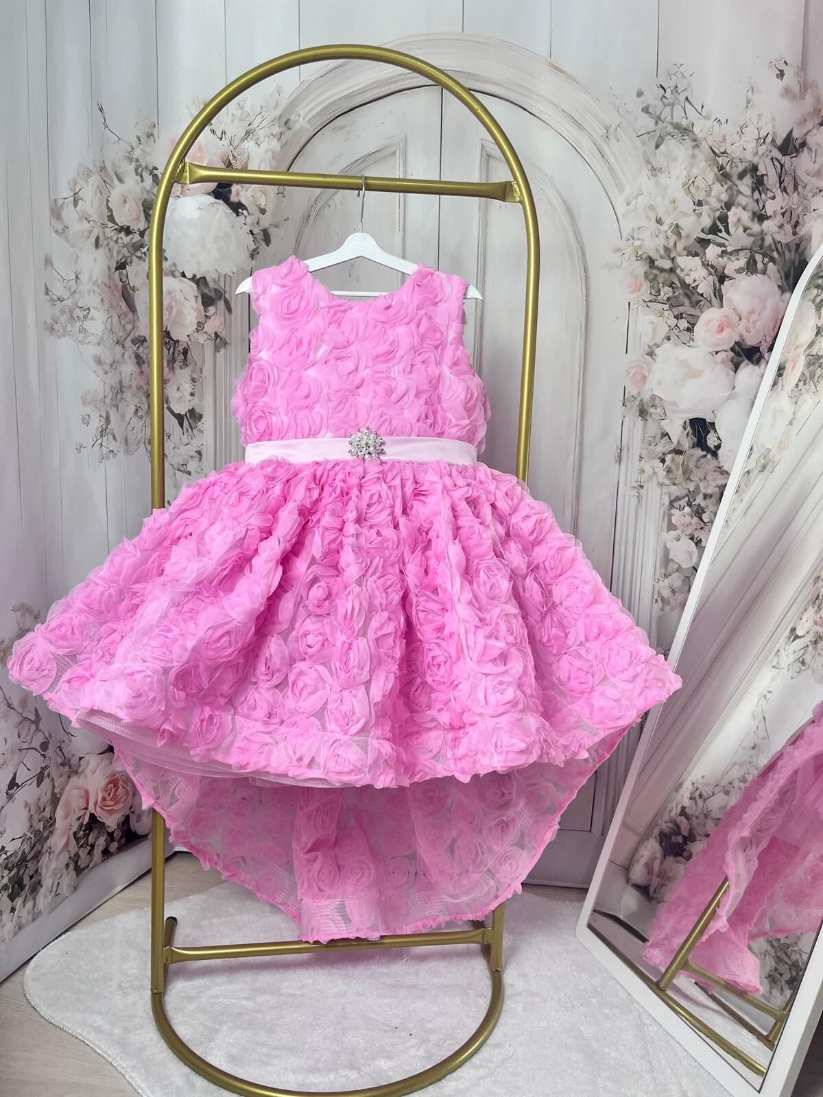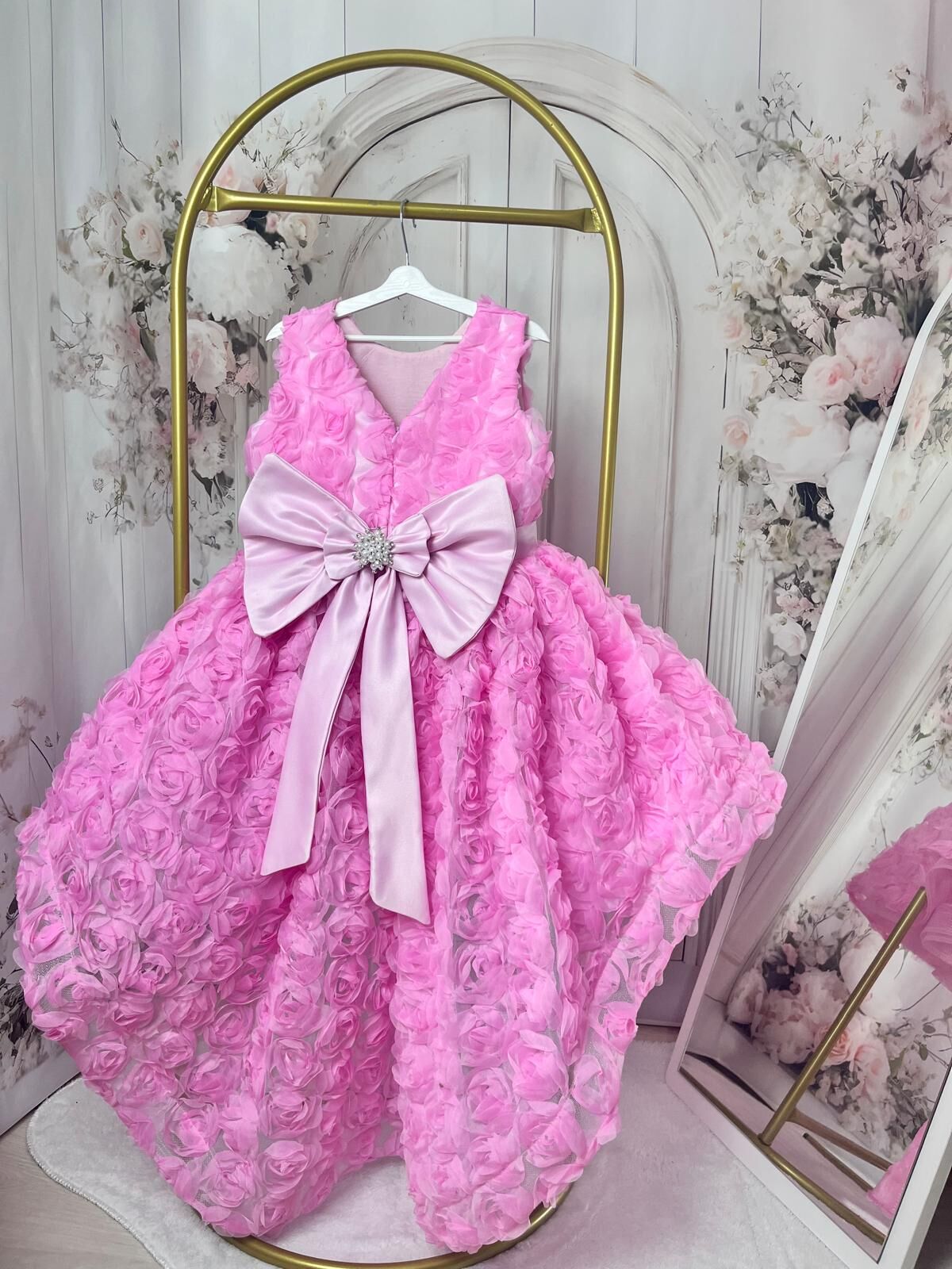 Bu gül kumaşlı kuyruklu elbise, her kızın hayalini süsleyecek!