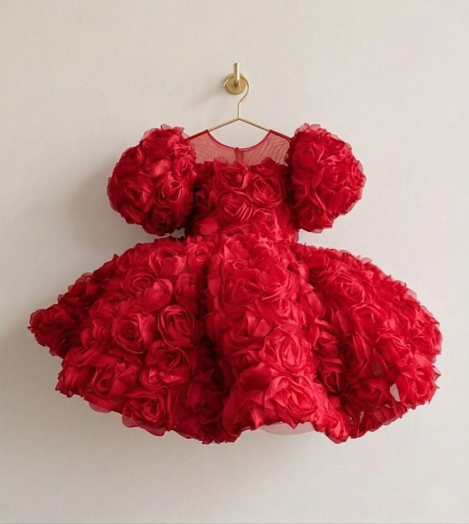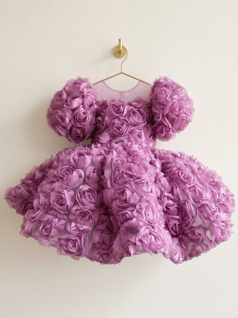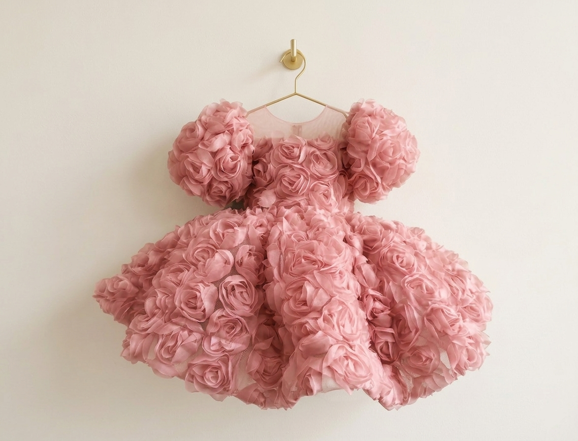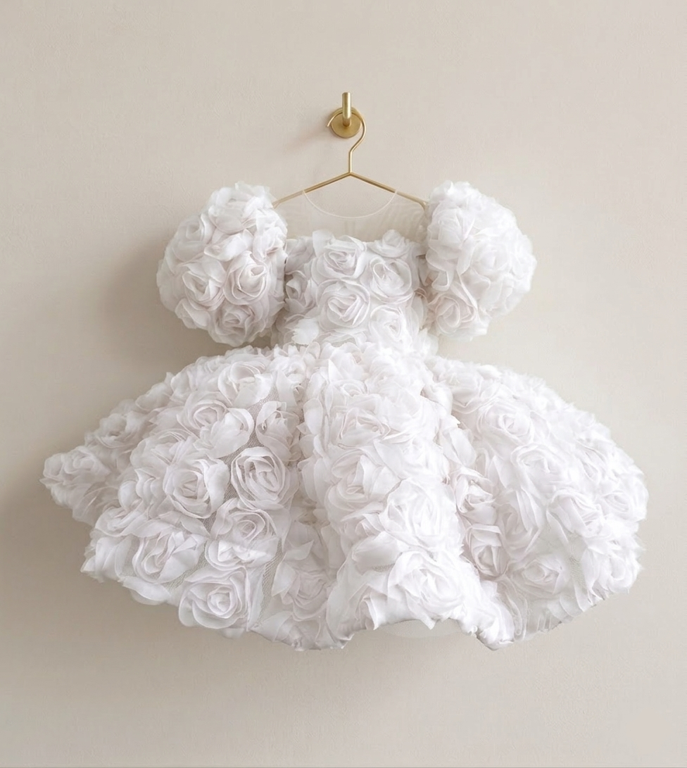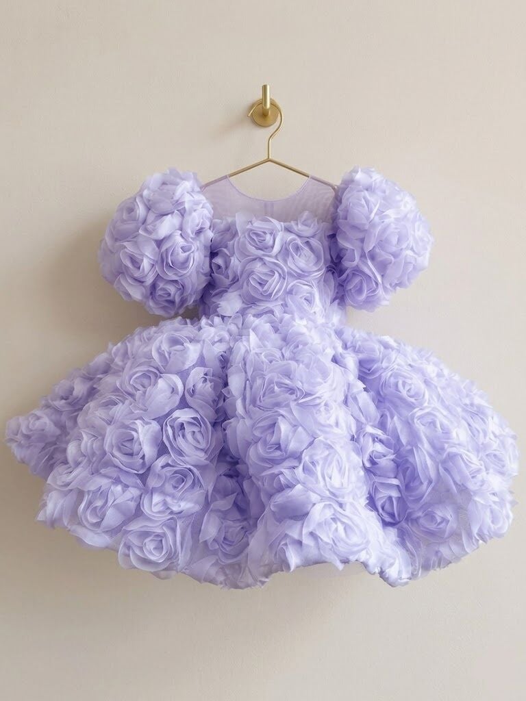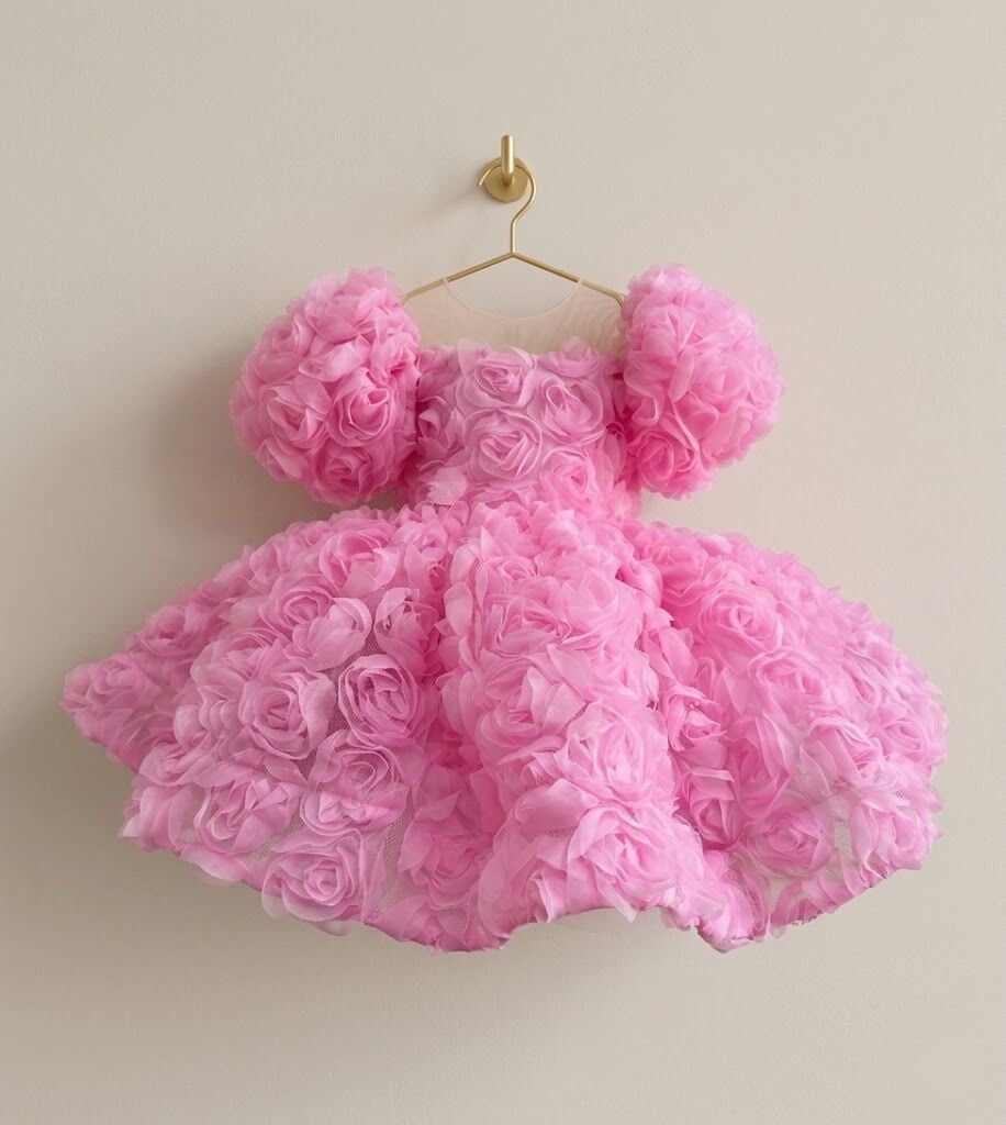 Roselyn Kız Çocuk Kabarık Gül Detaylı Doğum Günü Elbisesi Abiye